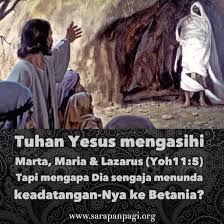 Yesus datang setelah saudara Maria dan Marta mati dan berkatalah Marta kepada Yesus bahwa sekiranya Yesus ada disini maka saudaranya tidak mati.