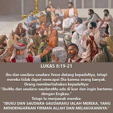 Yesus menjawab mereka: “IbuKu dan saudara-saudaraKu ialah mereka, yang mendengarkan firman Allah dan melakukannya.”