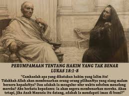Perumpamaan hakim tidak benar yang tidak takut Allah dan tidak menghormati seorangpun terpaksa membenarkan seorang janda yang meminta pembelaan.
